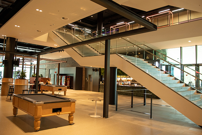 Gravity was awarded the painting and sealer contract for the construction of E7A at Macquarie University which established a new and lively environment where university students can engage, acquire knowledge, and exchange ideas. Diverse areas cater to the requirements of users, ranging from relaxed seating areas in the main foyer to secluded collaborative spaces further within the structure. The entrance area introduces an eye-catching, angular kitchenette crafted using gracefully curved solid timber which was protected with various sealers to achieve the highest level of finish.